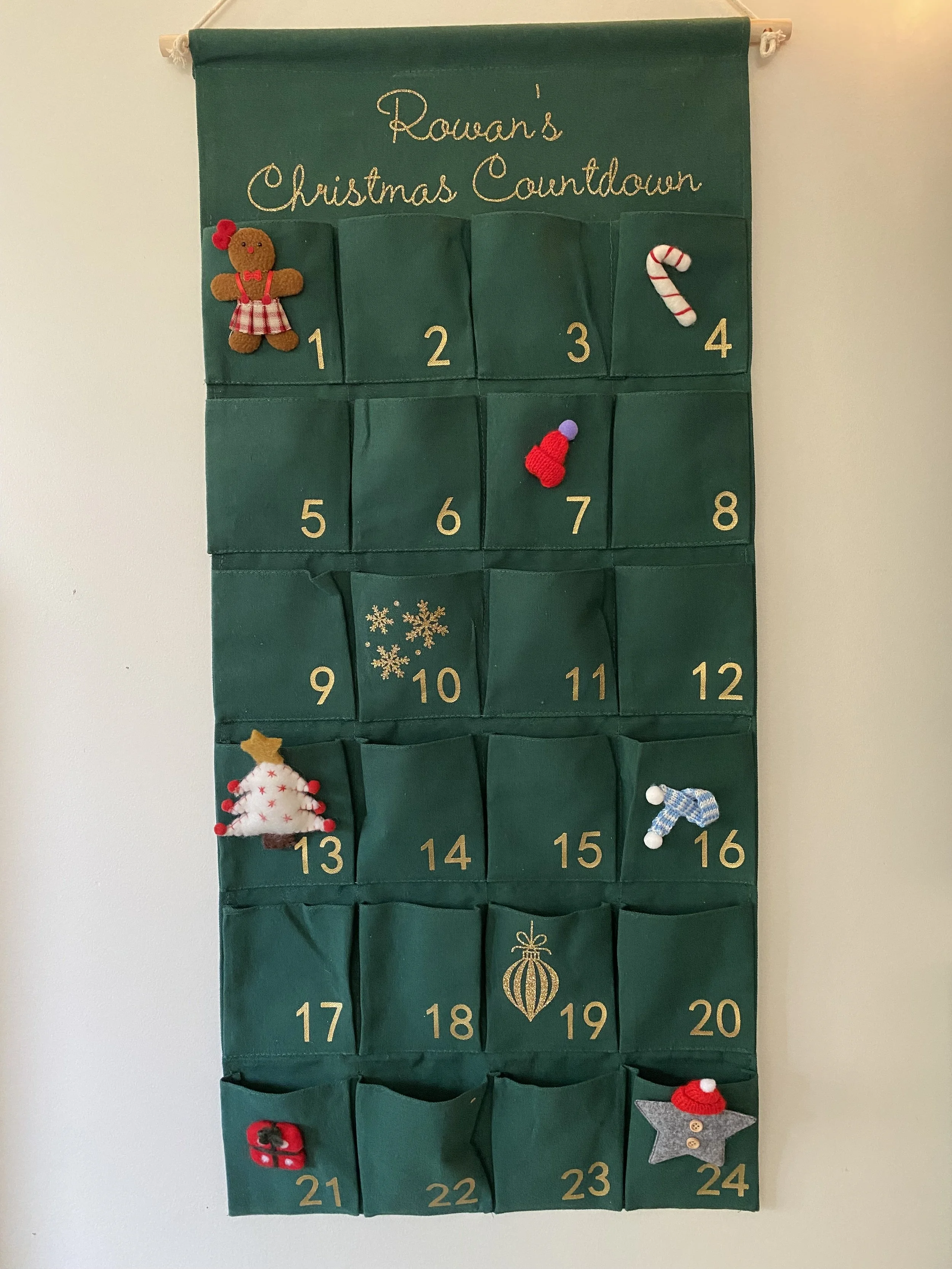 Bring holiday cheer to your home with our handcrafted Reusable Fabric Advent Calendar, featuring charming felt festive Christmas decorations and characters. Designed to hang from the wall, it’s the perfect way to save space while adding a festive touch to your home. Each calendar is thoughtfully made with attention to detail, ensuring it becomes a cherished family tradition year after year!
